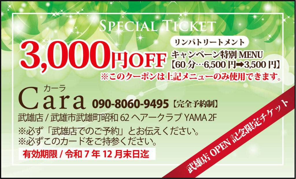男女気軽に通える格安サロンCaraさん武雄店でご利用頂けます。